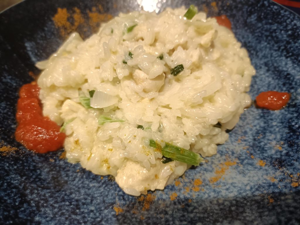 リールのリゾットは炊いたお米にソースを絡めて仕上げています。