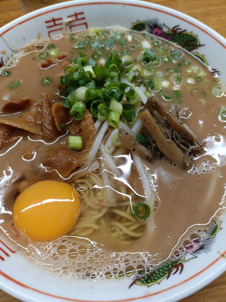 夜は徳島ラーメン ホテルの方に紹介されるまで知らなかった!豚骨スープに甘辛豚バラ、コショウが効いたメンマに 入れ放題生卵 豚骨ラーメン好きの自分にはかなりヒットでした~