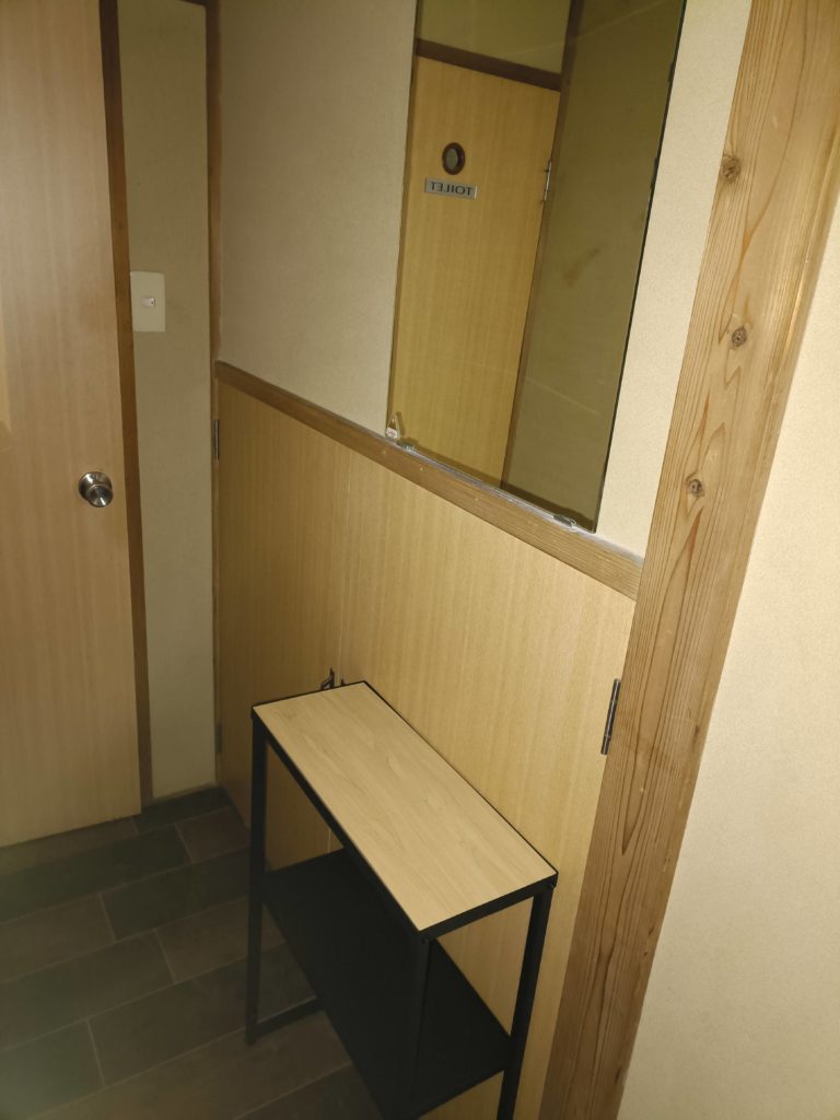 だんだん出来上がってきてます。今回は兄に鏡を付けてもらい買っておいた台を設置、荷物置きに使ってください。。
